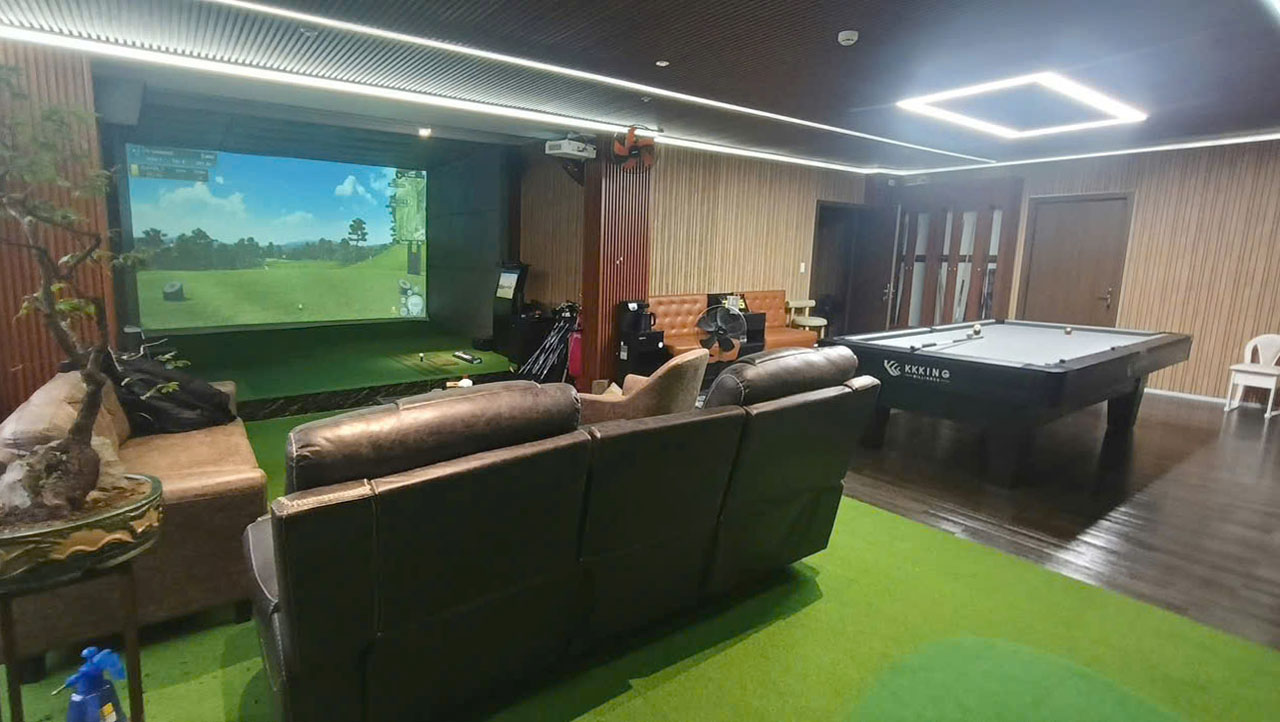 Phòng golf được thiết kế theo phong cách sang trọng, tinh gọn và tối ưu diện tích, phù hợp cả trong biệt thự và khu văn phòng cao cấp.